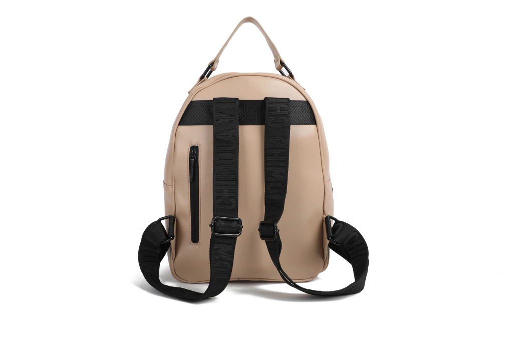 Su bolsillo frontal con cierre, te permite mantener tus cosas super organizadas y como detalle de categoria tiene un aplique metalico negro grabado con la marca.