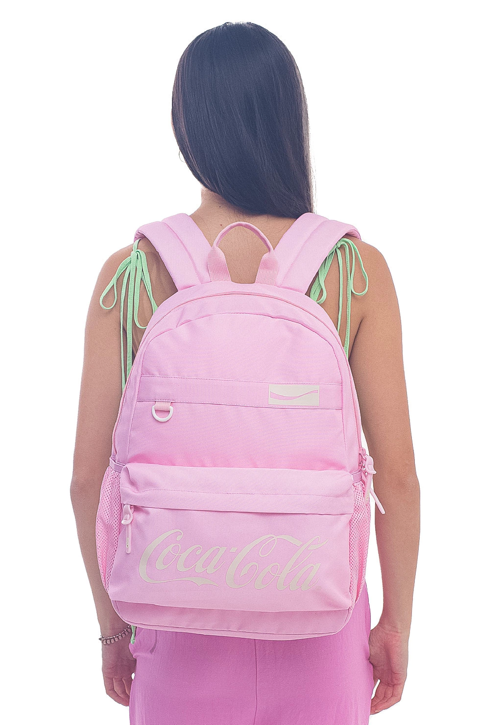 Tiradores engomados con logotipo. Bolsillo laterales abiertos en rejilla ajustable.